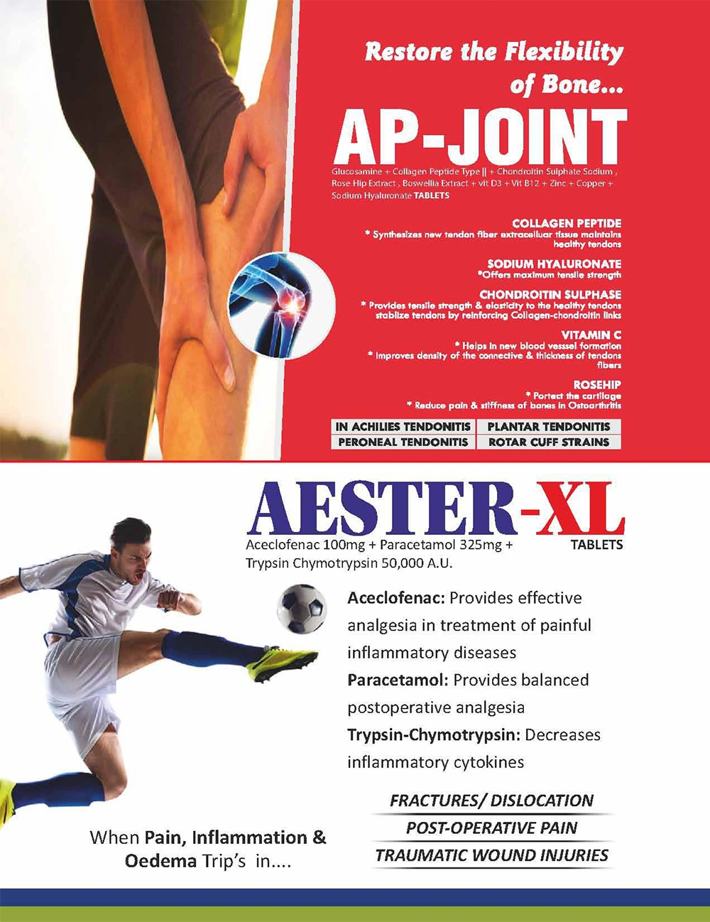 Aceclofenac 100mg + Paracetamol 325mg + Trypsin Chymotrypsin 50,000 A.U.